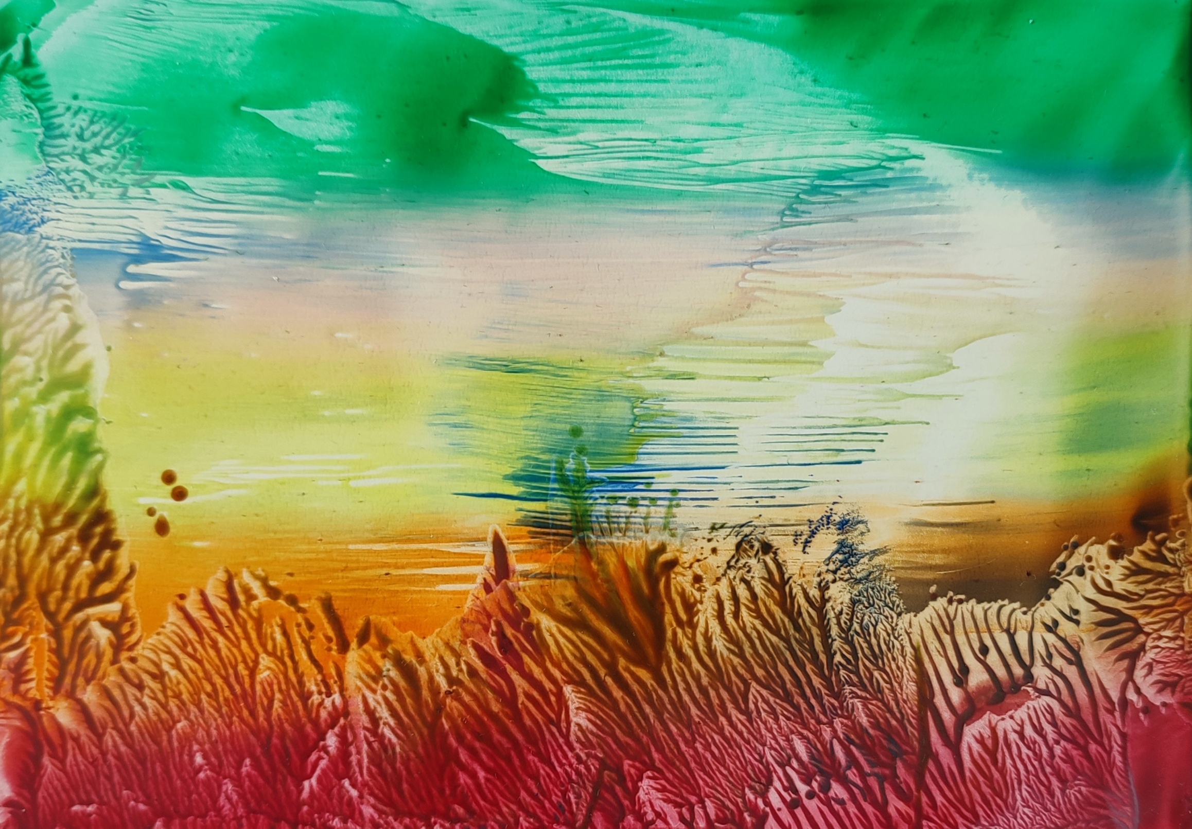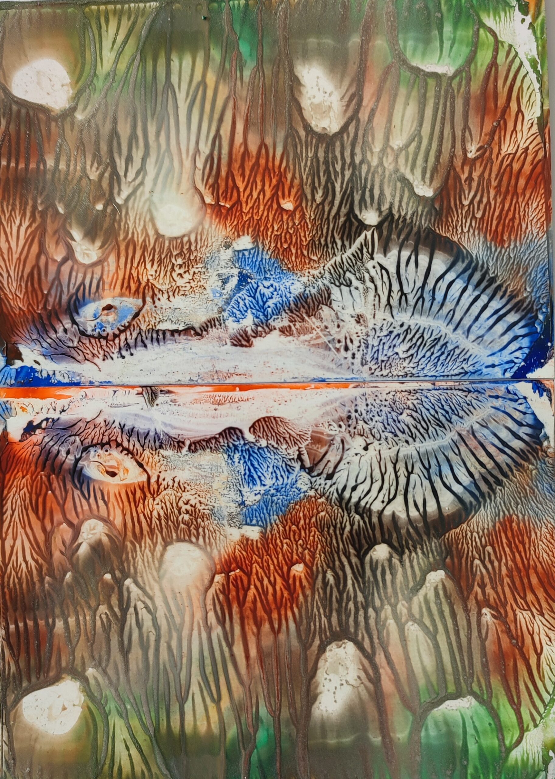 Vind zijn oorsprong rond 1000 voor Christus. Met een warmtebron maken we gekleurde bijenswas vloeibaar om het aan te brengen op encaustic papier.